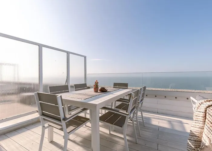 Penthouse With Two Terraces And Magnificent Sea View lägenhet erbjuder ett kök samt rum med te/kaffebryggare, teve och Wi-Fi. Boendet ligger 20 minuters promenad från Storms och 10 minuters gångavstånd från Het Witte Paard.
